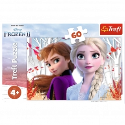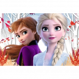 Puzzle s motivem Zazračný svět Anny a Elsy z filmu Frozen 2 přináší radost všem fanouškům tohoto kouzelného světa. Skládá se z 60 dílků a po sestavení vznikne obrázek o rozměrech 330x220 mm.