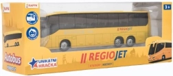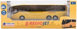 Vydejte se za zážitky s ikonickým žlutým autobusem REGIOJET. Model s kovovým tělem a plastovými detaily nabízí zpětný chod, otevírací dveře a délku 19 cm – skvělý dárek pro malé řidiče i sběratele.