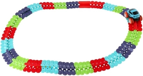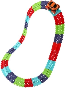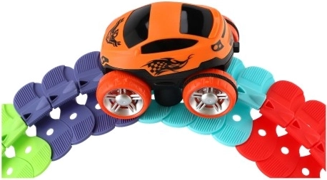 Závodní dráha se skládá z barevných, propojovacích dílů, které umožňují ohýbání dráhy do různých tvarů.