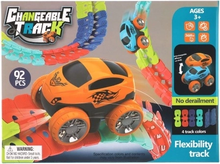 Objevte tuto jedinečnou závodní dráhu, která dětem umožňuje proměnit každou hru v nezapomenutelný zážitek. Díky flexibilním dílům lze dráhu snadno a rychle poskládat do různých tvarů a barevných kombinací. Autíčko, které je součástí balení, svítí a pohybuje se po dráze, čímž zaručuje hodiny zábavy.