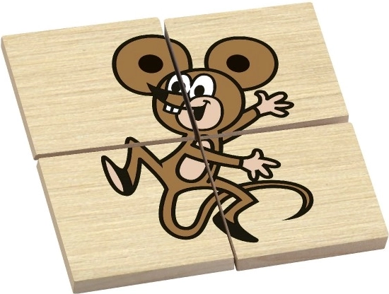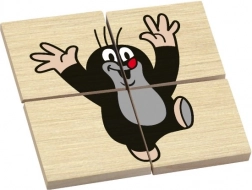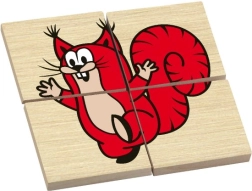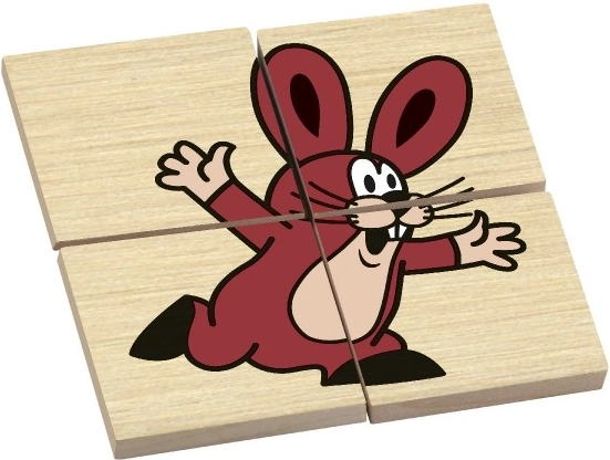 KRTEK, myš, ježek, zajíc, žába a veverka na samostatných čtyřdílných skládačkách. Každý obrázek baví, učí a podporuje představivost dětí.