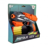 Lehká a bezpečná dětská pistole na pěnové náboje pro zábavnou akční hru. Snadné nabíjení, jednoduché ovládání a měkké pěnové náboje pro bezpečnější hraní. Ideální pro děti od 6 let, rozměry 20 × 14 cm, v balení 5 ks nábojů.