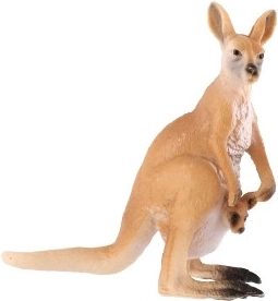 Figurka zachycuje typické znaky – hnědou srst, dlouhý ocas a mládě ve vaku – pro realistické a poučné hraní.