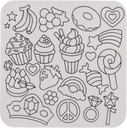 Obsahuje různé fólie a nálepky s motivy jako jsou cupcakes a květiny.
