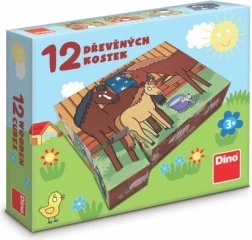 Dino dřevěné kostky domácí zvířátka 12 ks