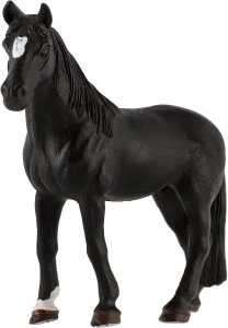 Tento černý kůň je vypodobněn s velkým důrazem na detaily, včetně hřívy a ocasu, což přidává na realistickém vzhledu.