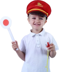 Tato zábavná sada výpravčího je skvělá pro všechny malé i větší fanoušky železnice. Děti se snadno vžijí do role, nasadí stylovou červenou čepici s výšivkou, zapískají na píšťalku a zvednou výpravku – a vlak může vyrazit! Skvělé pro rozvoj fantazie, sociálních dovedností a tematických her.