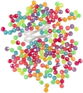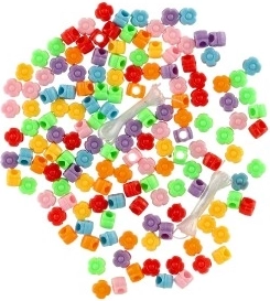 - Plastové korálky (mix barev) + šňůrka na navlékání