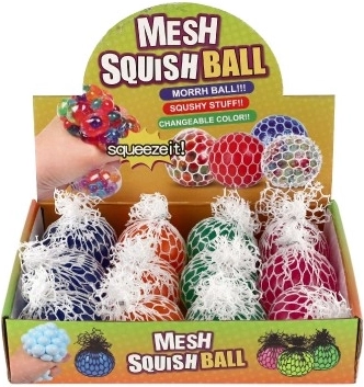 Antistresový míček se sítkou je ideální pomůcka pro děti i dospělé, kteří potřebují uvolnit napětí, zlepšit soustředění nebo protáhnout prsty. Při stisku se skrz oka síťky vytvářejí bubliny, které poskytují taktickou a vizuální stimulaci a podporují relaxaci.