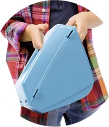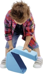 Modrý koš lze snadno vyjmout a zavěsit na madlo. Děti mohou „sbírat trávu“ a zlepšovat své motorické dovednosti.