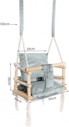 Díky minimalistickému designu a kvalitním materiálům skvěle doplní moderní interiér. Montáž je snadná, lana o průměru 10 mm zajistí spolehlivé zavěšení. Houpačka je určena pro děti, které již samostatně sedí, s nosností až 25 kg.