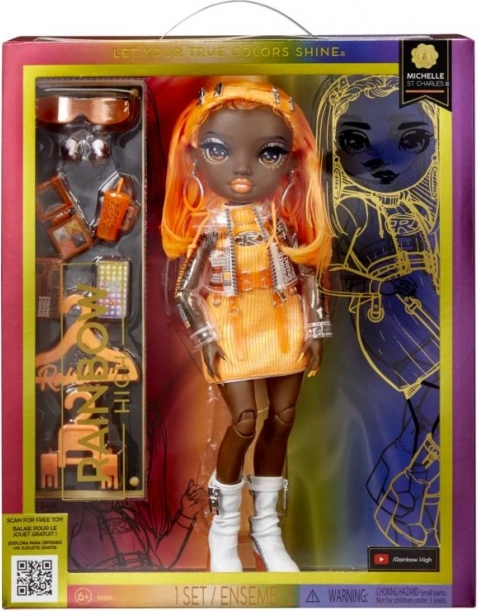 Objevte kouzlo módní panenky Rainbow High Michelle St. Charles, která je výjimečná nejen svými živými oranžovými doplňky, ale také svým stylovým oblečením. Stojí přibližně 22 cm vysoká a je ideální pro děti od 6 let. Tato panenka nejen že rozvíjí představivost, ale je i skvělým dárkem díky balení, které měří 8.1 x 20.3 x 30.5 cm.