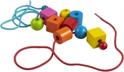 Zábavná sada velkých dřevěných korálků s provázkem a předlohami pro první navlékání. Podporuje jemnou motoriku, koordinaci oko–ruka a rozpoznávání barev a tvarů. Bezpečné provedení, korálky o průměru 20 mm se snadno drží i těm nejmenším.