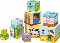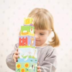 Objevujte svět na farmě a učte se hrou. Barevné ilustrace zvířátek, čísla a scény z každodenního života na statku děti zaujmou a přirozeně rozvíjejí vnímání rozměrů, představivost i paměť. Z kostek snadno postavíte stabilní věž až 86 cm, ohrady pro zvířátka nebo mosty – fantazii se meze nekladou.