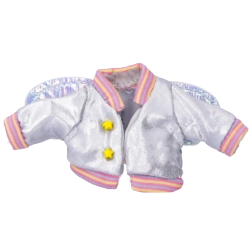 Otočte tubus a objevujte více než 9 doplňků: šaty, stříbrnou bundičku, boty se ponožkami, kabelku a čelenku/čepici – vše dokonale sladěné.