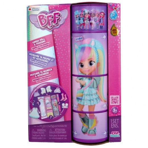 Objevte nové nejlepší kamarádky z řady CRY BABIES BFF! Panenka Jenna má cca 15 cm, duhové vlasy, třpytivé oči a plně pohyblivé tělo pro stylové pózování. V balení najdete více než 9 překvapení, včetně módního oblečku, kabelky, čelenky/čapky, páru bot se stylovými ponožkami a náhrdelníku BFF. Ideální dárek pro děti od 3 let.