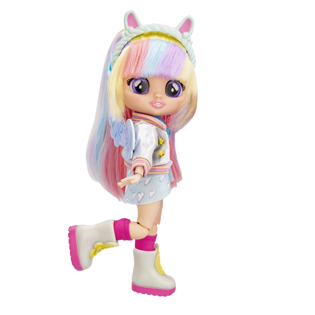 Jenna zaujme duhovými vlasy, velkýma křišťálovýma očima a módním outfitem v pastelových barvách. Ideální pro fashion hraní a sbírání.