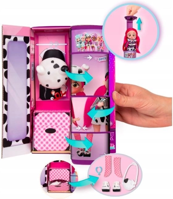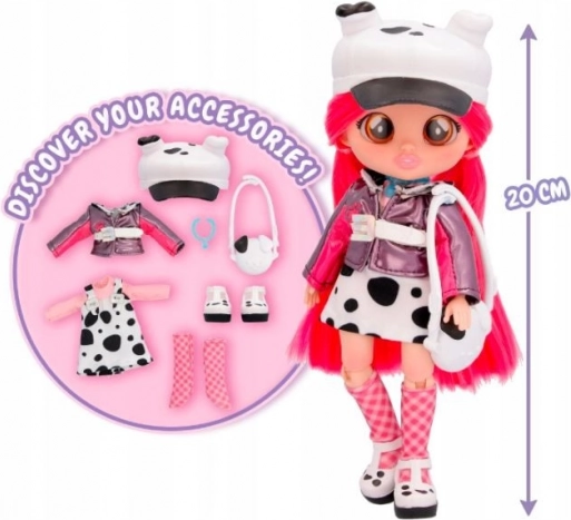 Součástí je také náramek/náhrdelník BFF, kabelka přes rameno a další stylové drobnosti. Speciální tubusové balení se promění v garderobu, ve které můžete oblečky míchat a kombinovat. Panenka je inspirována světem CRY BABIES Magic Tears a objevuje se v seriálu CRY BABIES BFF na YouTube Kitoons.