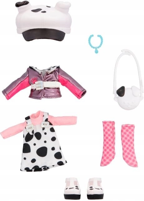 - Šaty, koženková bundička, ponožky, boty Mary Jane, čepice s oušky, kabelka, náhrdelník BFF a další překvapení (celkem 9+)