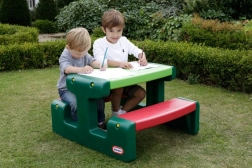 Hledáte univerzální dětský stolek na zahradu i domů? Tento jednocástný piknikový stolek LITTLE TIKES je ideální pro tvoření, malování, modelování i svačiny. Robustní plastová konstrukce zvládne každodenní používání a údržba je otázkou chvilky – stačí setřít vlhkým hadříkem.