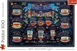 Objevte relax s puzzle 500 dílků s motivem čas na kávu – hravý kreslený koláž plný lahodných kávových motivů. Po složení vznikne obrázek o rozměrech 480 × 340 mm. Vyrobeno z vysoce kvalitních materiálů s kalandrovaným, světlo odrážejícím papírem pro snadnější skládání a z ekologických surovin. Vyrobeno v Polsku.