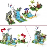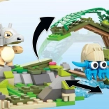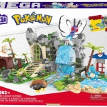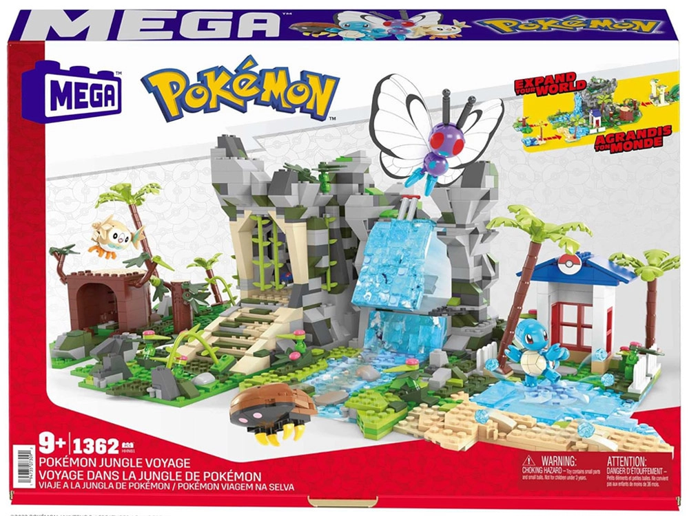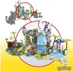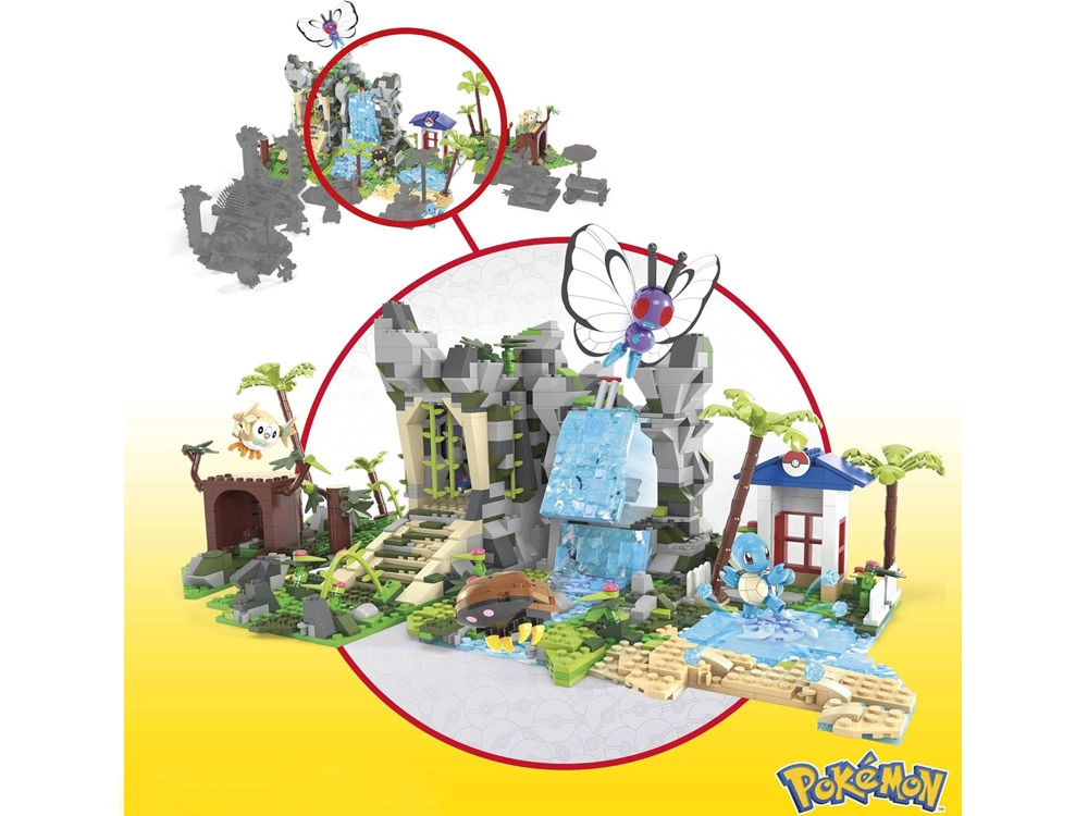 Čtyři modulární části můžete libovolně přestavovat a propojovat: jeskyně v deštném lese, hora s vodopádem, vstup do starověkých ruin a jezero s pláží a palmami. Součástí jsou také čtyři ikonické Pokémon figurky k sestavení: Butterfree, Squirtle, Kabuto a Rowlet.