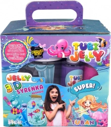 S touto zábavnou sadou TUBAN TUBI JELLY vytvoří děti i začátečníci snadno elastické 3D gelové figurky. Šest zářivých barev v lahvičkách s přesnou špičkou usnadňuje kreslení kontur i vyplňování tvarů. Hotové výtvory stačí na pár minut ponořit do aktivátoru a pak je můžete vystavit v 1l akváriu s vodními krystaly – ideální pro mořské scény s motivem mořské víly.