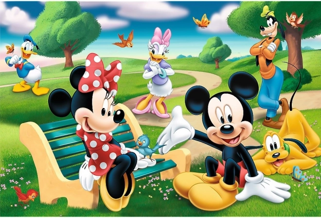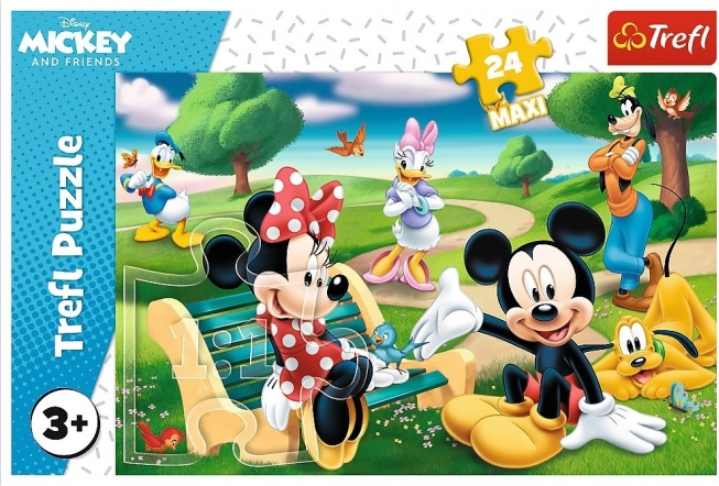 Dětské puzzle s motivem MICKEY MOUSE a přátelé obsahují 24 MAXI dílků, ideální pro malé stavitele. Po složení vytvoří obrázek o rozměru 60 × 40 cm. Vyrobeno z kvalitních a ekologických materiálů s kalandrovaným, lesklejším papírem pro snazší skládání. Vyrobeno v Polsku.