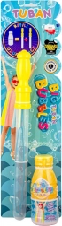 Proměňte každé venkovní odpoledne v kouzelnou podívanou. Stačí nalít roztok do podlouhé misky, ponořit meč a mávnout – na očku se vytvoří bublinková „plachta“, ze které snadno vzniknou velké a lesklé bubliny. Meč je lehký, odolný a zvládnou ho i malé dětské ruce.