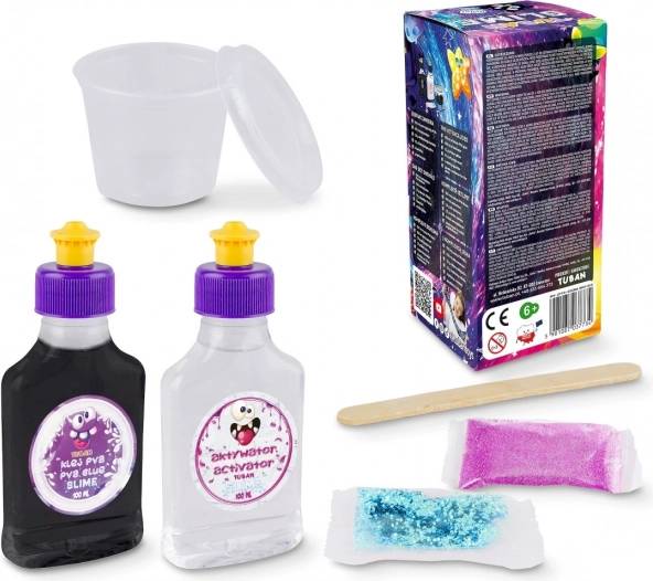 Sada Slime Galaxy je ideální pro děti, které milují experimentovat a tvořit! Černý sliz oslní miliony třpytivých a neonových částic, připomínajících galaxii. Hračku lze využít k rozvoji dětské fantazie a zručnosti.