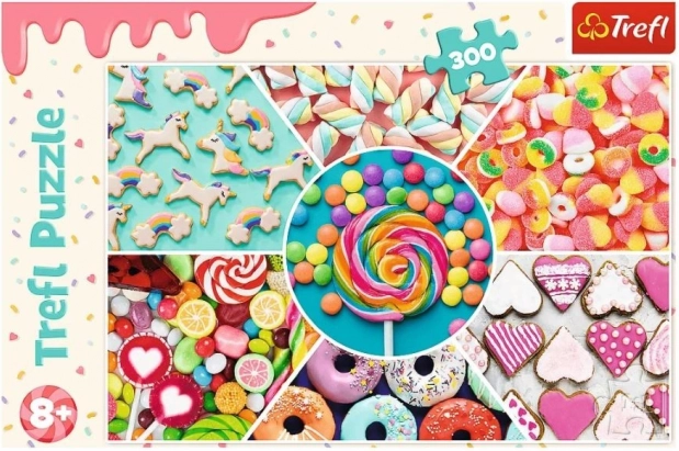 Užijte si skládání s puzzlem o 300 dílcích s motivem sladkostí od značky Trefl, vyrobený z vysoce kvalitních materiálů.