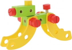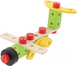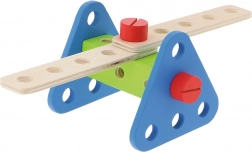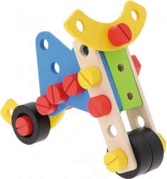 Barevná dřevěná stavebnice pro malé konstruktéry se skládá z 35 dílů: kostičky, šroubky, nástroje a návod s nápady. Podporuje jemnou motoriku, kreativitu a koncentraci. Vše je vyrobeno z kvalitního dřeva a natřeno netoxickými barvami.