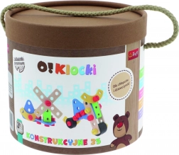Dřevěné stavebnice O!KLOCKI přinášejí dětem radost z tvoření a učení. Z balení 35 dílů postavíte větrník, letadlo, vozidlo i další originální výtvory – podle přiloženého manuálu nebo vlastní fantazie. Pevné spojovací díly a šroubky učí děti logice, trpělivosti a rozvíjejí koordinaci oko–ruka.