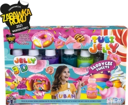 Sada TUBI JELLY Sladkosti přináší zábavný vstup do světa gelových výtvorů. Díky 6 gelovým barvám včetně brokátové zlaté a tematickým šablonám sladkostí snadno vytvoříte vlastní trojrozměrné gelové figurky. Stačí obkreslit kontury, vyplnit vzor, ponořit do aktivátoru a nechat ztuhnout.