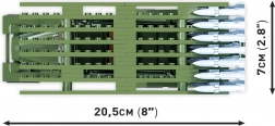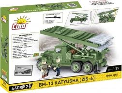 Postavte si jednu z nejikoničtějších zbraní druhé světové války – BM-13 KATUŠA, přezdívaná „Stalinovy varhany“. Tato šínová raketnice M-13 montovaná na nákladním automobilu ZIS-6 proslula ničivou salvou a psychologickým efektem, i přes menší přesnost jednotlivých raket. V reálu dosahovaly rakety M-13 podle verze doletu přes 9 km.