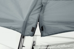 Altán postavíte přibližně za 15 minut. Stabilitu zvyšují napínací šňůry a kolíky, které pevně ukotví konstrukci v terénu.