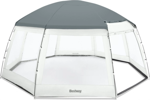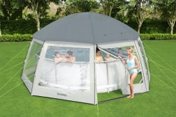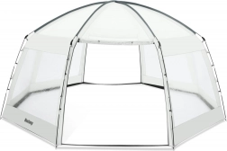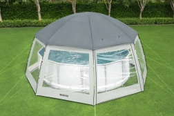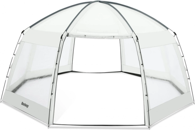 Vytvořte si na zahradě vlastní oázu klidu: tento prostorný altán pro bazén od Bestway chrání před sluncem, deštěm i hmyzem, poskytuje soukromí a díky výšce 295 cm umožňuje pohodlný průchod i s žebříkem. Je kompatibilní s vířivkami a nadzemními bazény až do průměru cca 4,88 m a zvládnete ho sestavit do 15 minut.