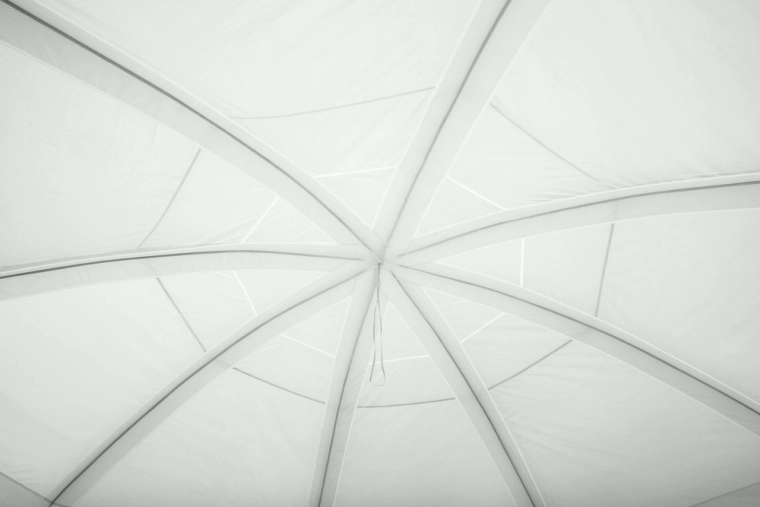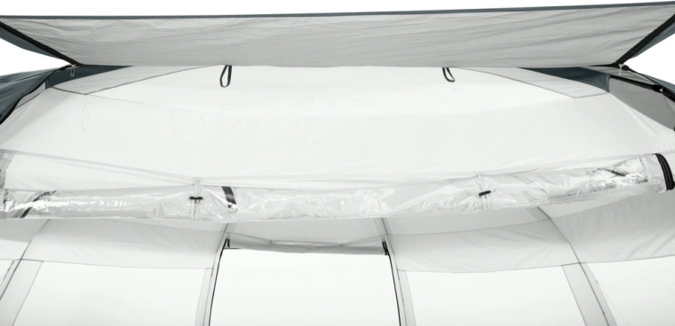 Ochranná kopule ve stylu stanu s dvouvrstvou konstrukcí udrží vodu i okolí bazénu čistší, omezí nečistoty unášené větrem a zajistí stín. Transparentní PVC okna propouštějí světlo a poskytují výhled, zatímco moskytiéry zajišťují cirkulaci vzduchu bez nežádoucího hmyzu. Stabilní rám s napínacími lany drží altán pevně na místě.