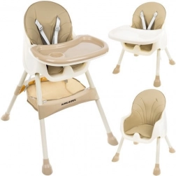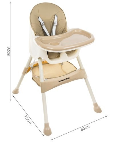 Židlička KRUZZEL 3v1 je promyšlená pomocnice pro každodenní stravování i hraní. Vysoké provedení je pohodlné pro rodiče při krmení, po demontáži nohou ji během chvilky proměníte na nízkou židličku pro větší děti a po sejmutí pultu a pásů slouží jako samostatná stolička. Stabilní konstrukce, široce rozkročené nohy a 5bodové pásy zajistí bezpečné sezení.