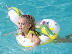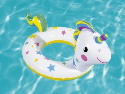 Dětský plavecký kruh BESTWAY ve tvaru veselého jednorožce pomáhá budovat jistotu ve vodě a přináší spoustu zábavy. Živá grafika s hvězdičkami zaujme na první pohled, zatímco pevný materiál zaručuje dlouhou životnost i při častém používání u bazénu nebo u moře.