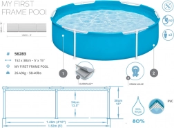 Bazén je vybaven stabilním, kovovým rámem, který zajišťuje adekvátní pevnost a trvanlivost celého konstrukce. Stěny jsou vyrobeny z třívrstvého materiálu – spojení odolného polyesteru a PVC, které chrání před poškozením.