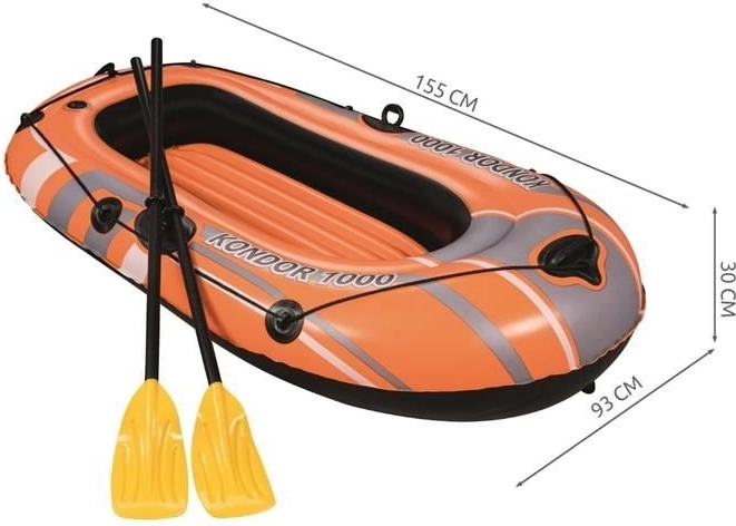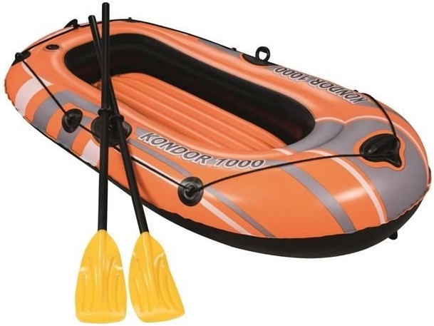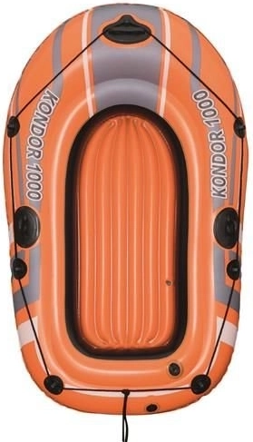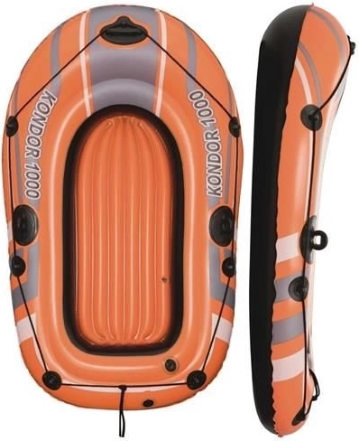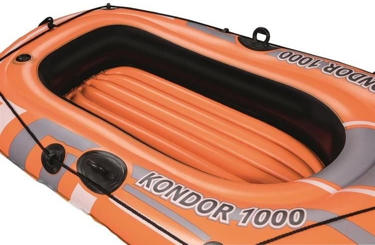 Nafukovací člun Kondor 1000 je určen pro rekreační vodní aktivity. Je vybaven třemi oddělenými vzduchovými komorami, což zajišťuje stabilitu a bezpečnost na vodě. Dále je člun opatřen kolem pro uchopení s integrovanými úchyty pro snadný vstup do vody. Nafukovací podlaha dodává extra pohodlí během vaší plavby.
