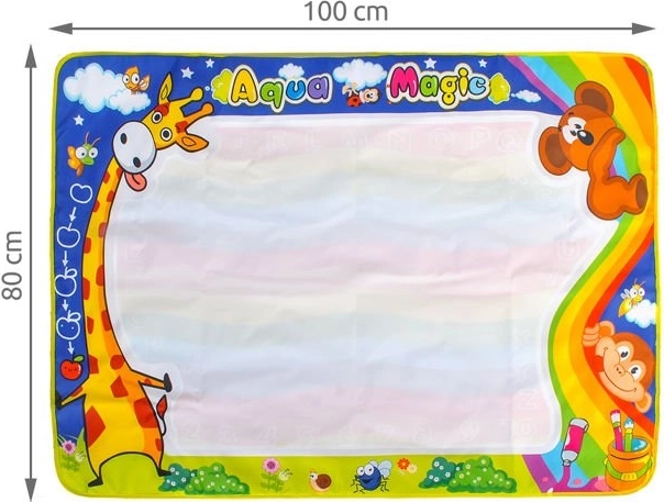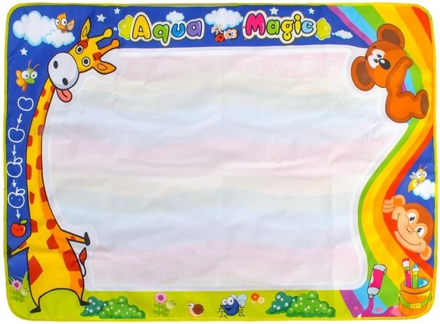 BAREVNÁ, NEKONEČNÁ ZÁBAVA - kouzelná pera lze mnohokrát znovu naplnit vodou; po vysušení je podložka opět připravena ke hře; živé barvy přitahují pozornost dítěte a podporují malování; rohož má pečlivě opracované okraje a zajímavé potisky; umožňuje vytvářet kresby v barvách duhy.