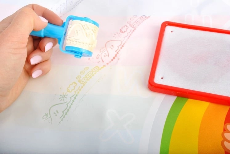 SPECIFIKACE - rozměry podložky (délka / šířka): 100 / 80cm, váha sady: 0,77 kg, sada obsahuje podložku, 4 fixy, 2 štětce, 10 razítek, roličku a nádobku na razítkování, 6 šablon na otiskování a pouzdro.