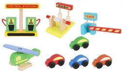 - 4 autíčka, helikoptéra, myčka, čerpací stanice, kasa, výtah, díly silnic, montážní sada