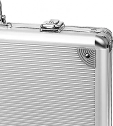 - Odolný hliníkový kufřík s uzamykáním a ergonomickou rukojetí