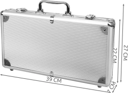 Uspořádejte si vlastní pokerový večer s kompletním setem, který nabízí vše potřebné pro Texas Hold'em i další karetní hry. Žetony s kovovým jádrem (10 g) přinášejí autentický kasinový pocit – mají příjemnou váhu, skvěle se stackují a jsou velmi odolné. Vše je uloženo v pevném hliníkovém kufříku s molitanovou výstelkou a přesně tvarovanými přihrádkami, takže obsah zůstane na svém místě i při cestování.