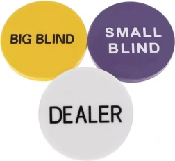 Žetony DEALER, SMALL BLIND a BIG BLIND zajišťují přehledná kola a plynulý průběh každé partie.
