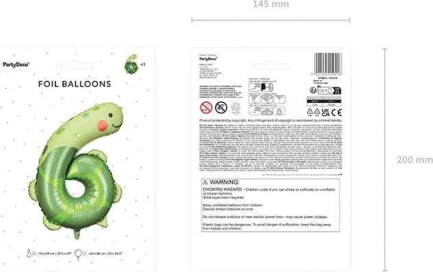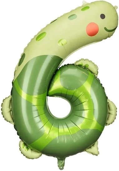 Fóliový balónek číslo 6 se zábavným motivem želvy je skvělou volbou pro narozeninové oslavy a fotokoutky. Díky kvalitní fólii dlouho drží tvar a barvy a je vhodný k plnění vzduchem i heliem.