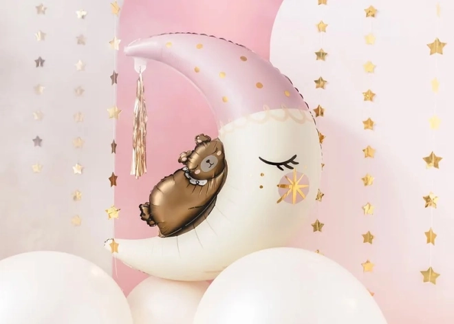 Hledáte půvabnou dekoraci na dětskou oslavu, vítání miminka nebo narozeniny? Tento fóliový balón s medvídkem na měsíci je ideální volbou. Díky možnosti nafouknutí heliem vytvoří krásný plovoucí efekt, zatímco při nafouknutí vzduchem skvěle poslouží jako součást výzdoby či fotokoutku.
